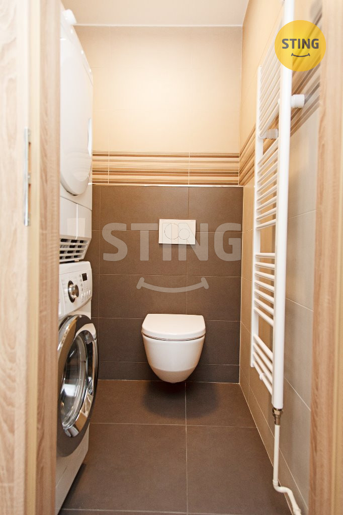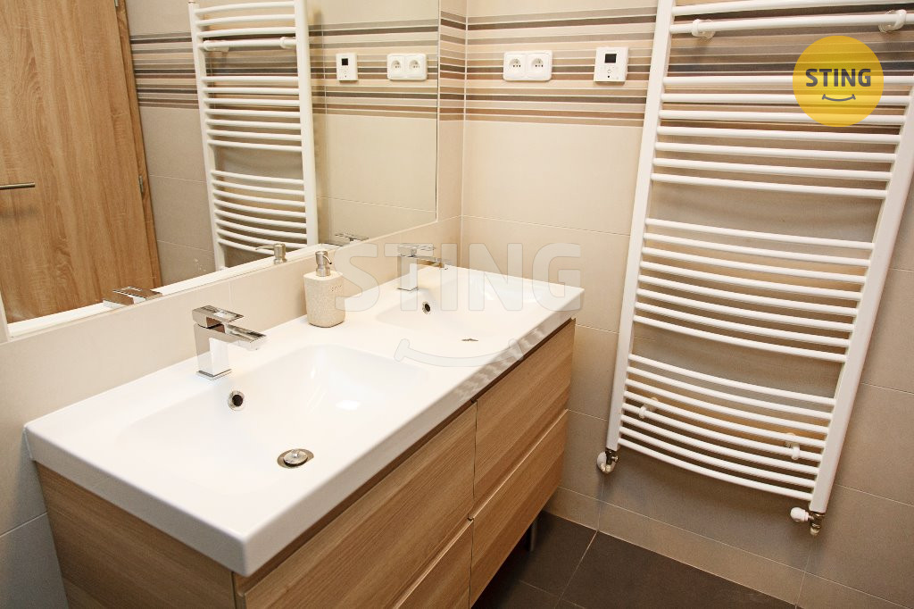 otopný žebřík. WC zvlášť s umyvadlem a skříňkou, technický prostor