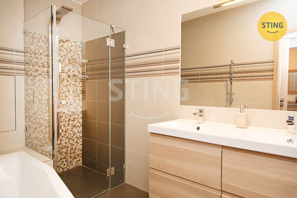 také sloužit jako šatna, či komora). Moderní koupelna v obkladu (obklad