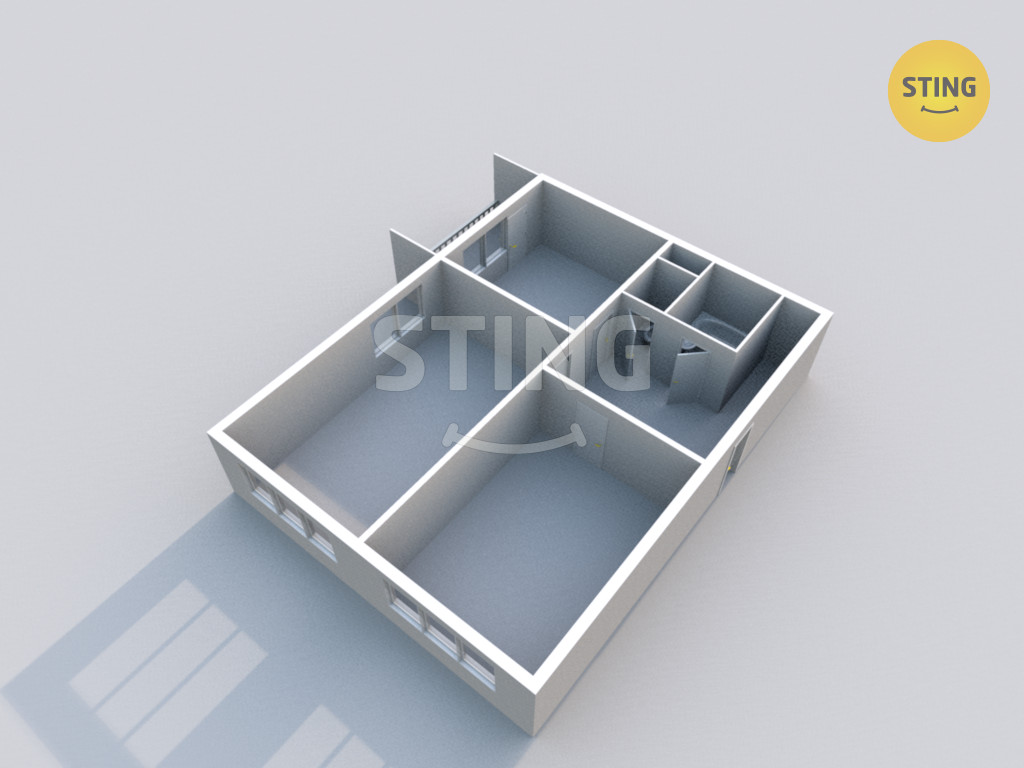 Byt je velice prostorný a má dva velké pokoje a čtvercovou kuchyň