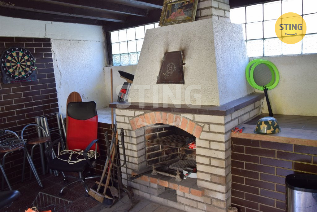 sprchovým koutem a WC. Na dům navazuje krbovna s udírnou a zděným
