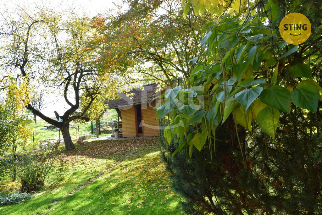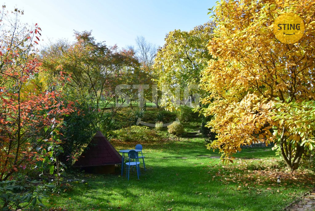 sklípkem. Zahrada s jezírkem a větším zahradním domkem je tvořena