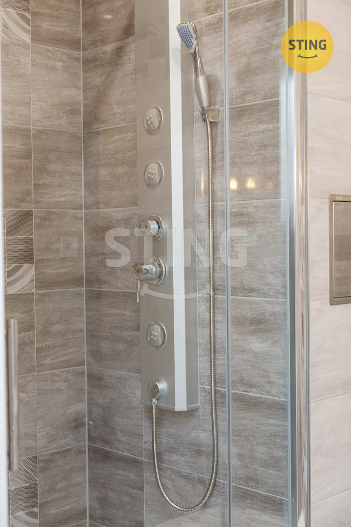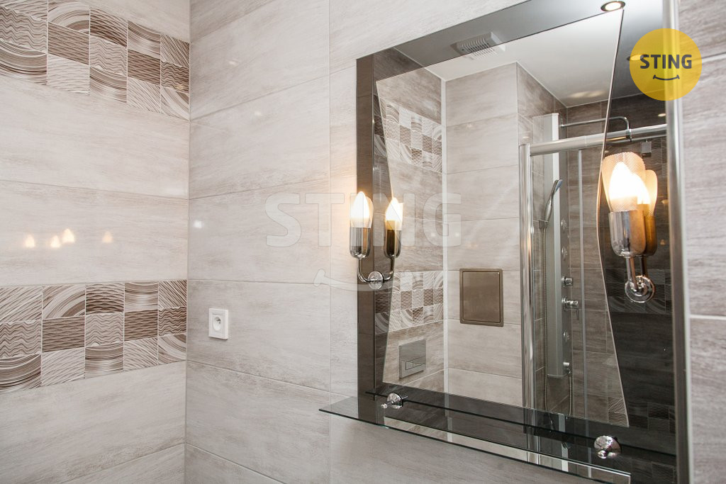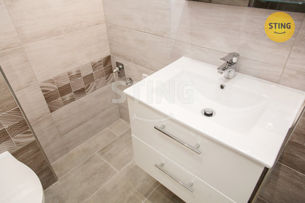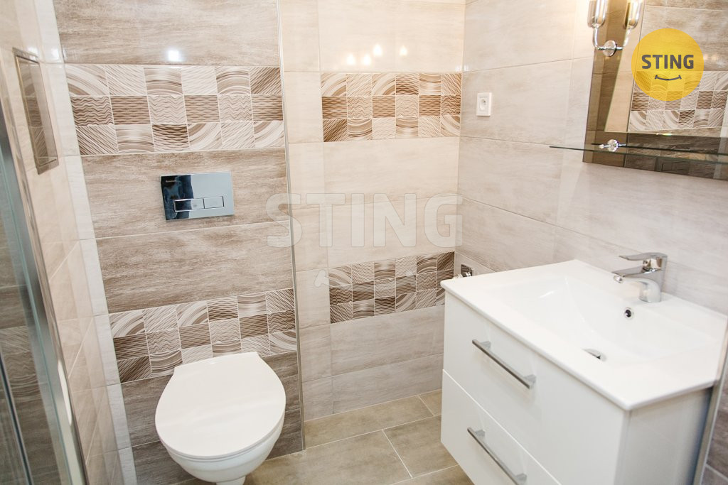 včetně myčky, trouby a indukce. V koupelně byl vybudován nově prosklený