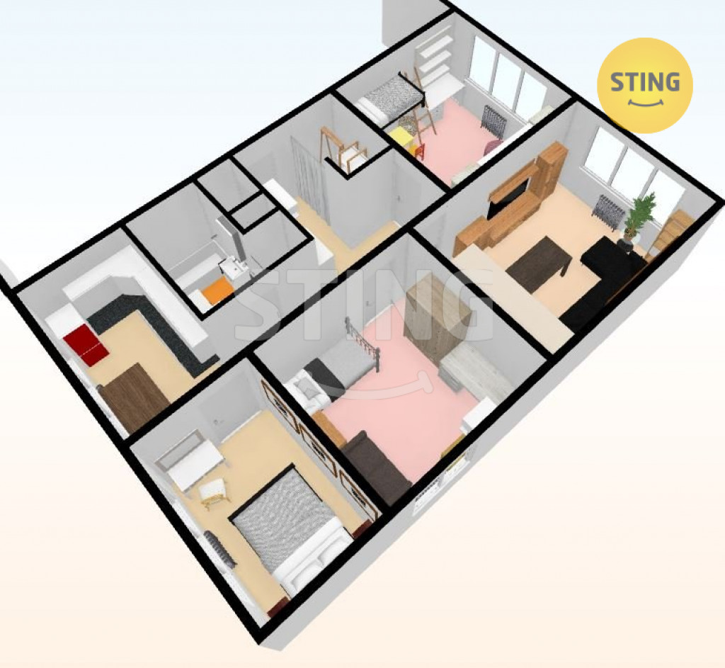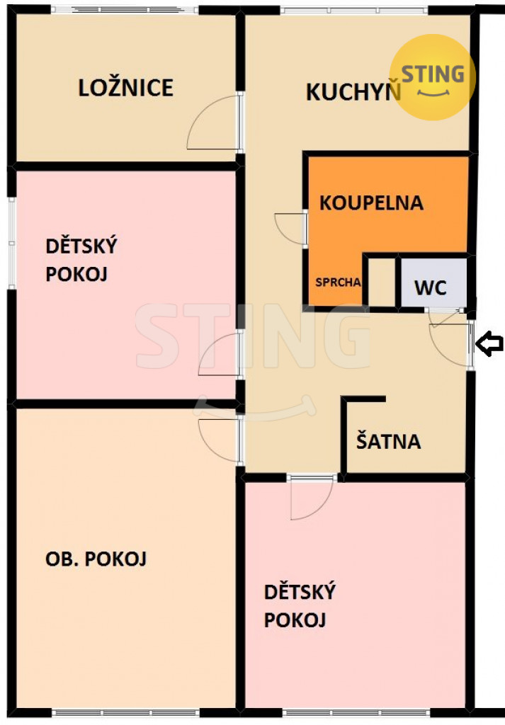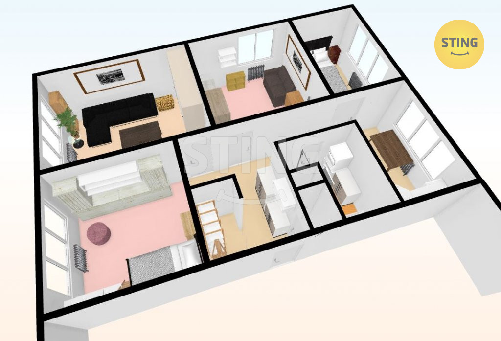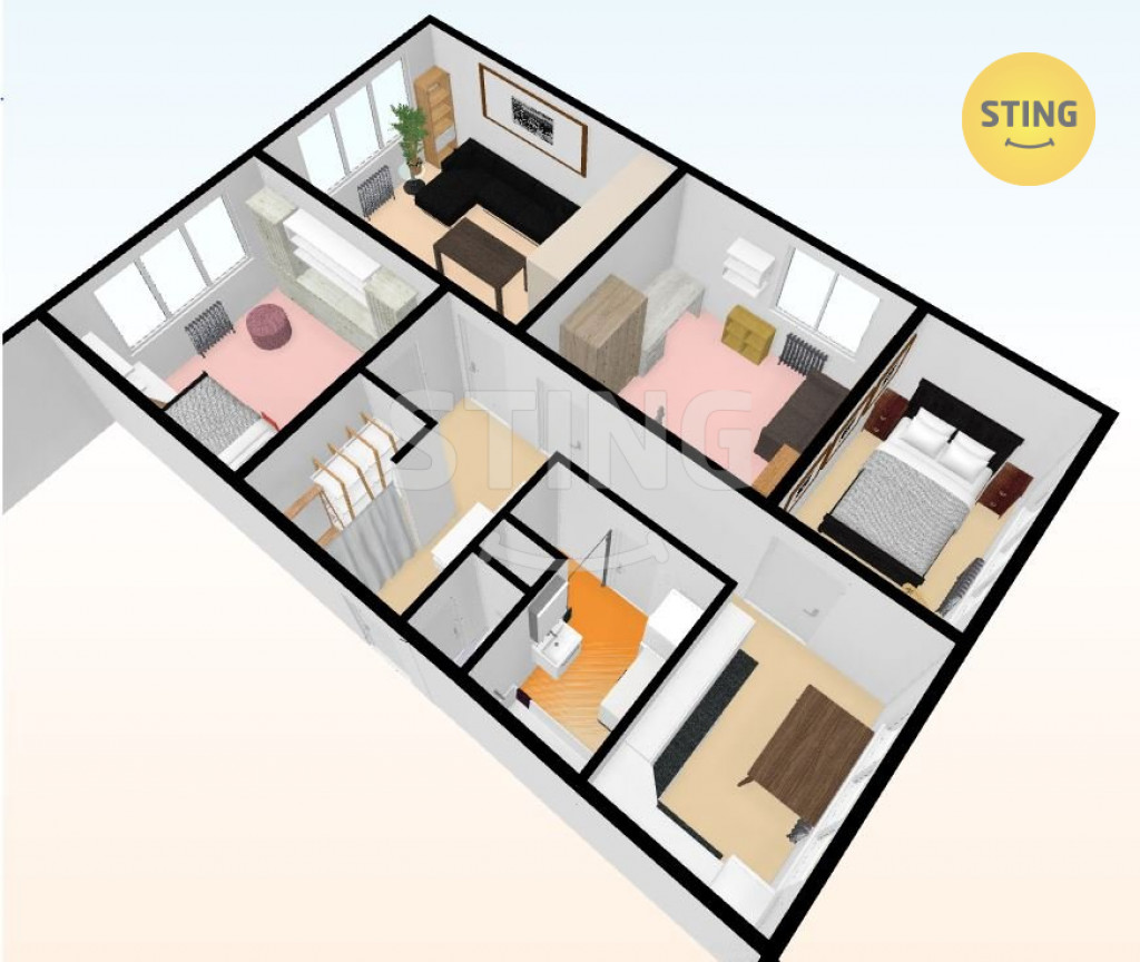Nabízíme prostorný byt 4+1 v osobním vlastnictví, se šatnou v atraktivní lokalitě Hlučína na Rovninách, ulice Písečná. Byt má 73 m2 a je velice pěkně dispozičně řešený. Jsou zde čtyři samostatné pokoje a dále na chodbě je prostorná zděná šatna. Všechny pokoje mají samostatný vstup z chodby. Koupelna má zděné jádro a je v ní umístěna jak vana, tak i zděný sprchový kout, umyvadlo, skříňka, pračka a sušička. Podlahy jsou v celém bytě plovoucí, v koupelně a WC je dlažba. Byt má okna na tři světové strany a je z nich pěkný výhled na okolí. K bytu náleží i dvě parkovací místa na ohraničeném parkovišti se závorou. Každé patro domů má pro tři byty na patře k užívání společnou zasklenou lodžii. V blízkosti věškerá občanská vybavenost ( školka, škola, obchody, MHD…). Doporučujeme prohlídku s makléřem.