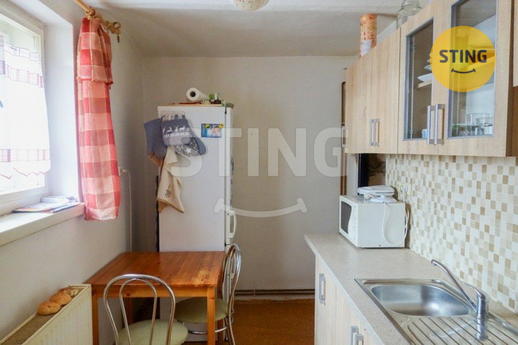 podsklepená garáž s dílnou. Vytápění domu je zajištěno kotlem na tuhá