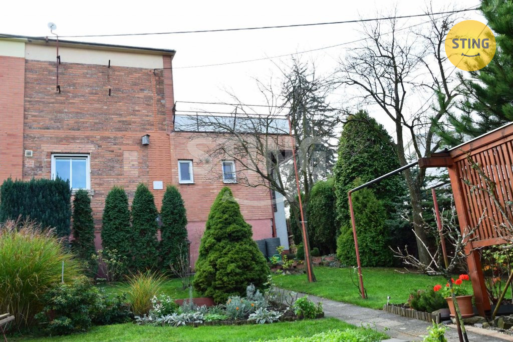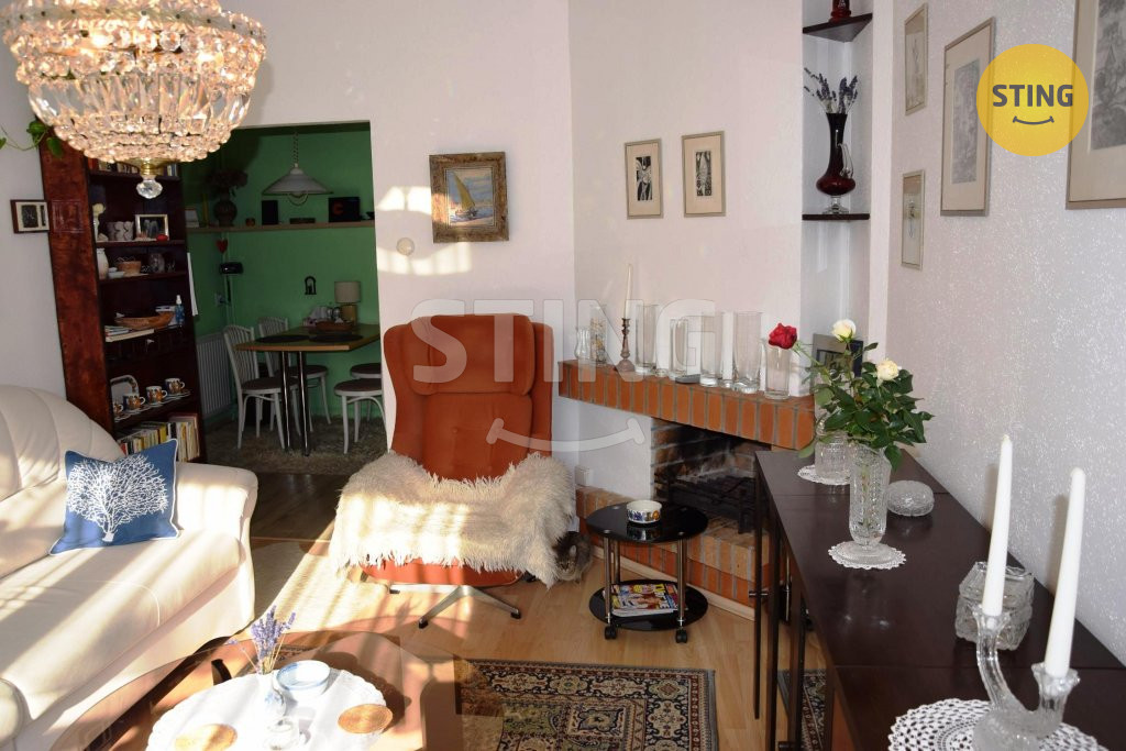 s posezením u krbu. K půldomku náleží předzahrádka 42 m2.