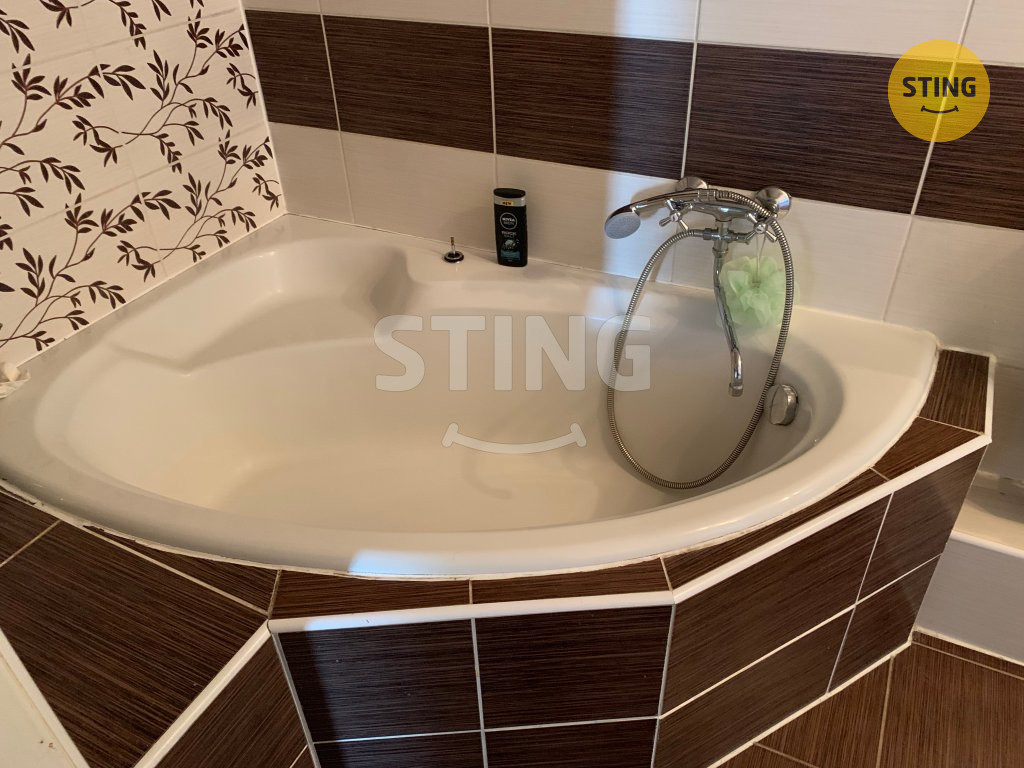 koupelnu s vanou, kuchyň, prostornou ložnici a velký obývací pokoj