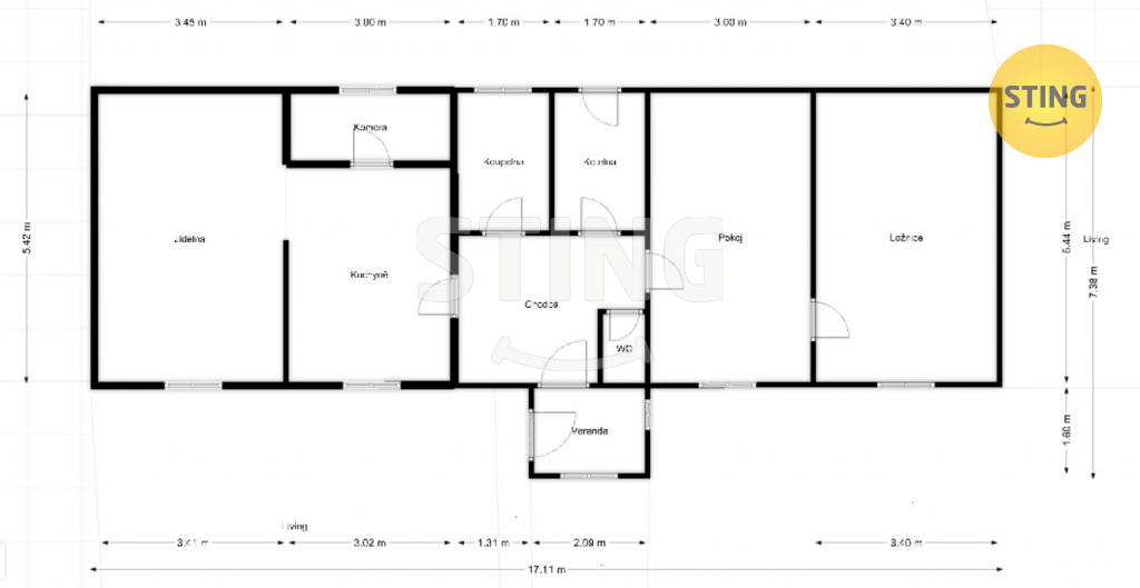 u Pardubic. Jedná se o přízemní rodinný dům o dispozici 3+kk. K domu