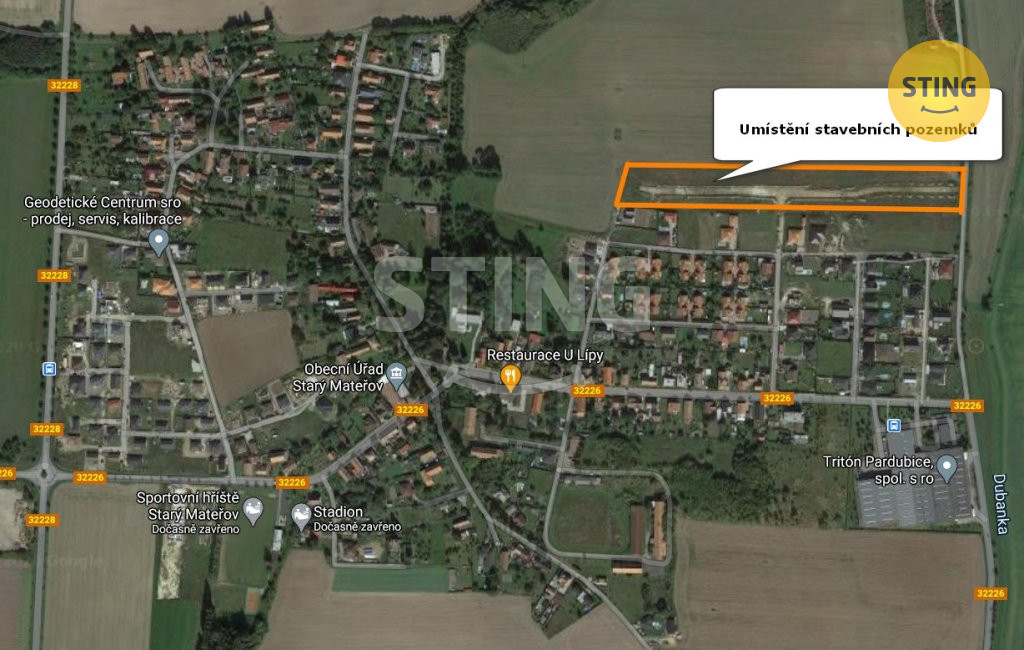 prodej 7 stavebních pozemků v obci Starý Mateřov, které jsou dle