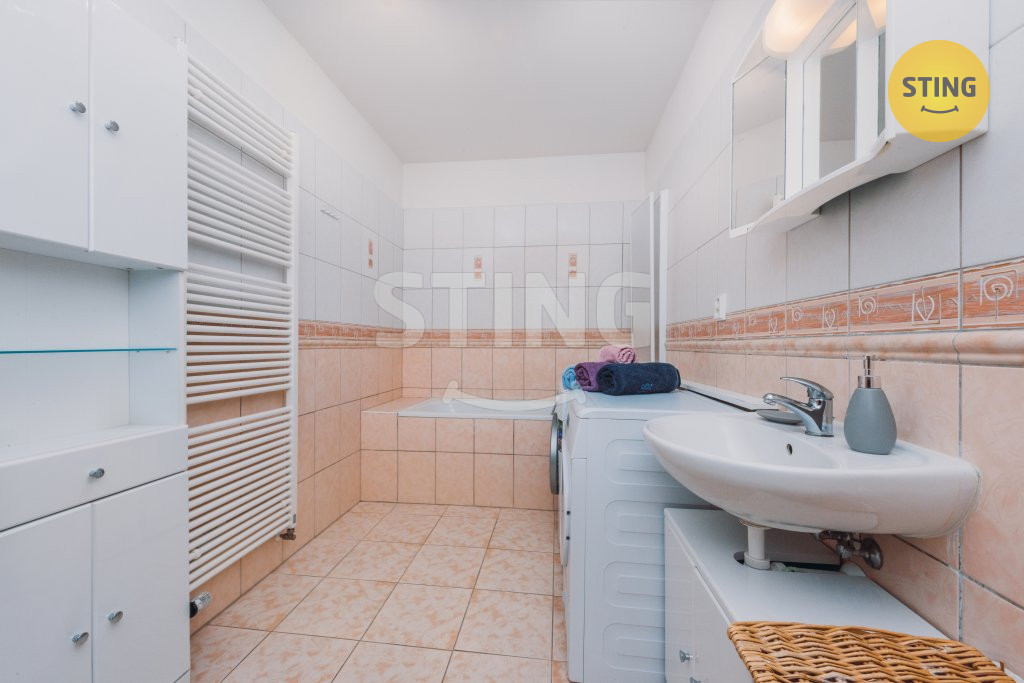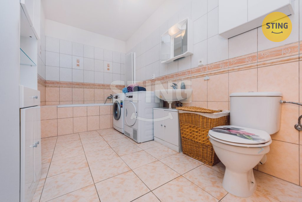 myčka, horkovzdušná trouba). Ve 2.NP je koupelna s vanou a WC, dále se zde