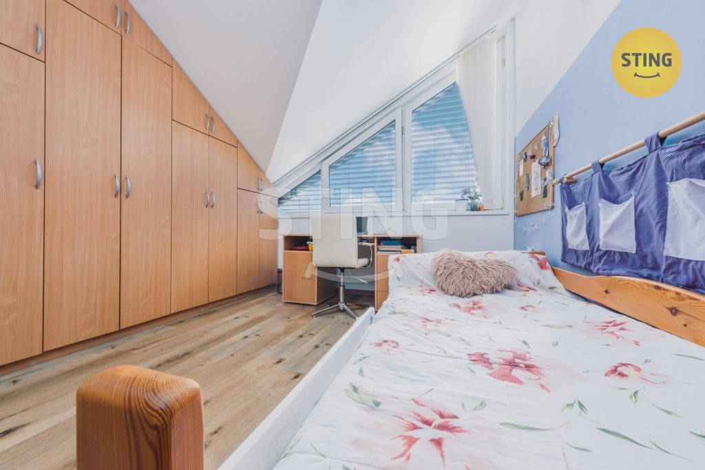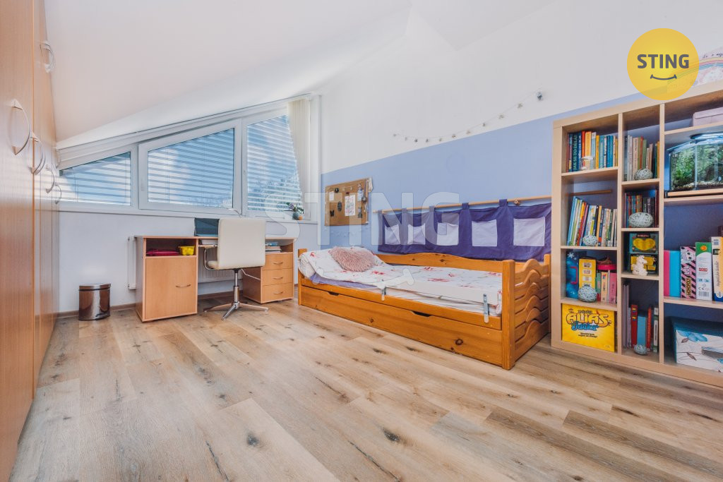 nacházejí tři samostatné pokoje, ložnice, dětský pokoj a pracovna.