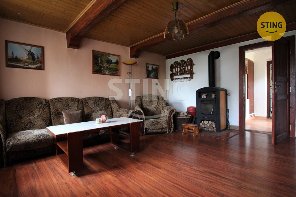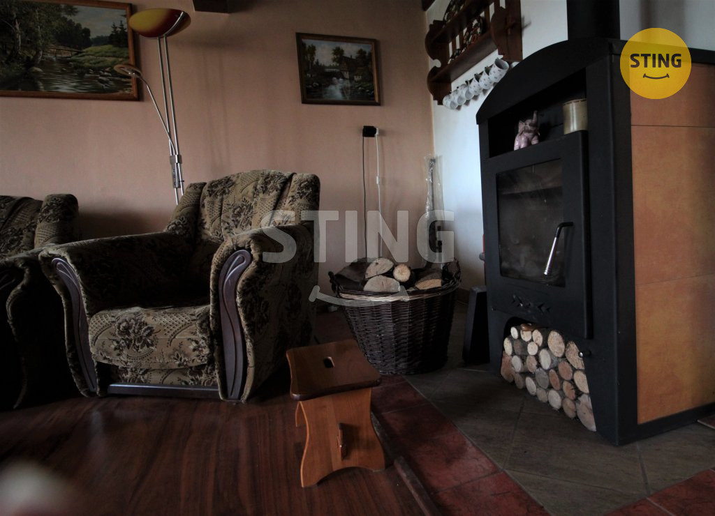 Vytápění objektu je zajištěno krbovými kamny s rozvodem do ÚT. Dům je