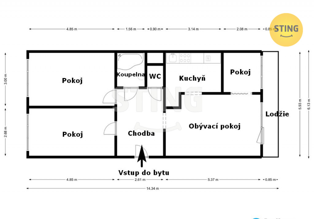 zasklenou lodžií ( 6,9 m2) a se skladovým prostorem se nachází