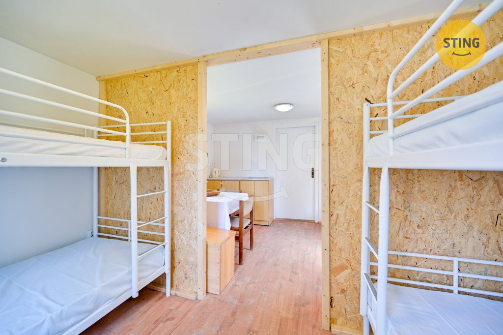 kuchyňským koutem, ložnice. Pitnou vodu je možno rozvést z blízkého
