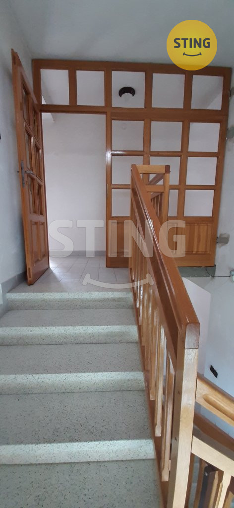V prvním patře je vstupní chodba, odkud lze jít do sklepa, garáže a do