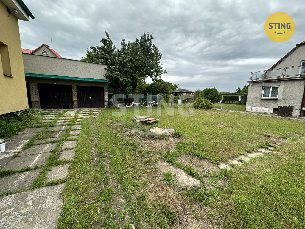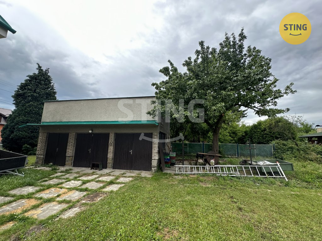 místností. Zahrada je v rovině a v zadní části je dvojgaráž + dílna a