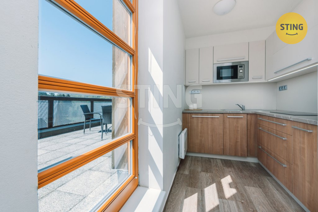 vlastní jižně orientovaná terasa s výhledem do okolní přírody. Celkové