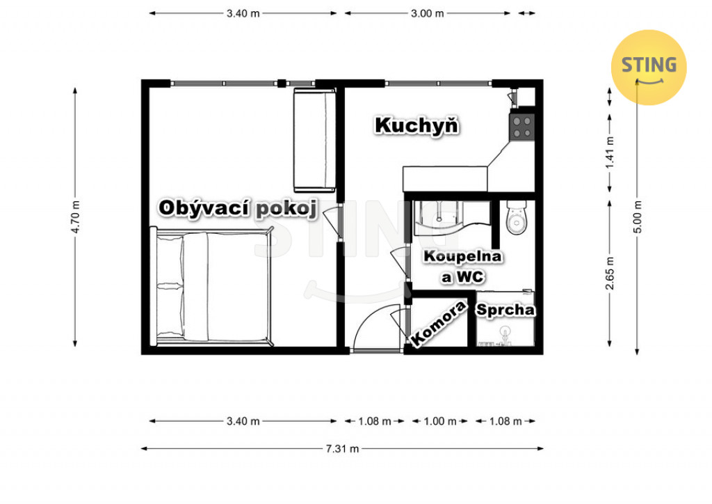 Nabízíme k pronájmu útulný byt 1+1 o užitné ploše 33 m2