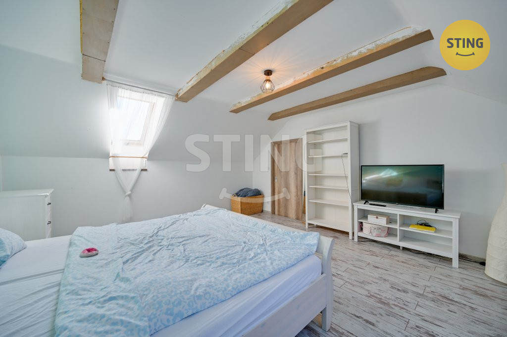 s toaletou. V prvním patře se nachází tři obytné pokoje. Ve dvoře domu,