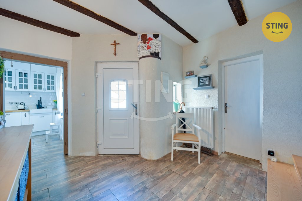 domu se nachází vstupní chodba, obývací pokoj s kuchyní a koupelna
