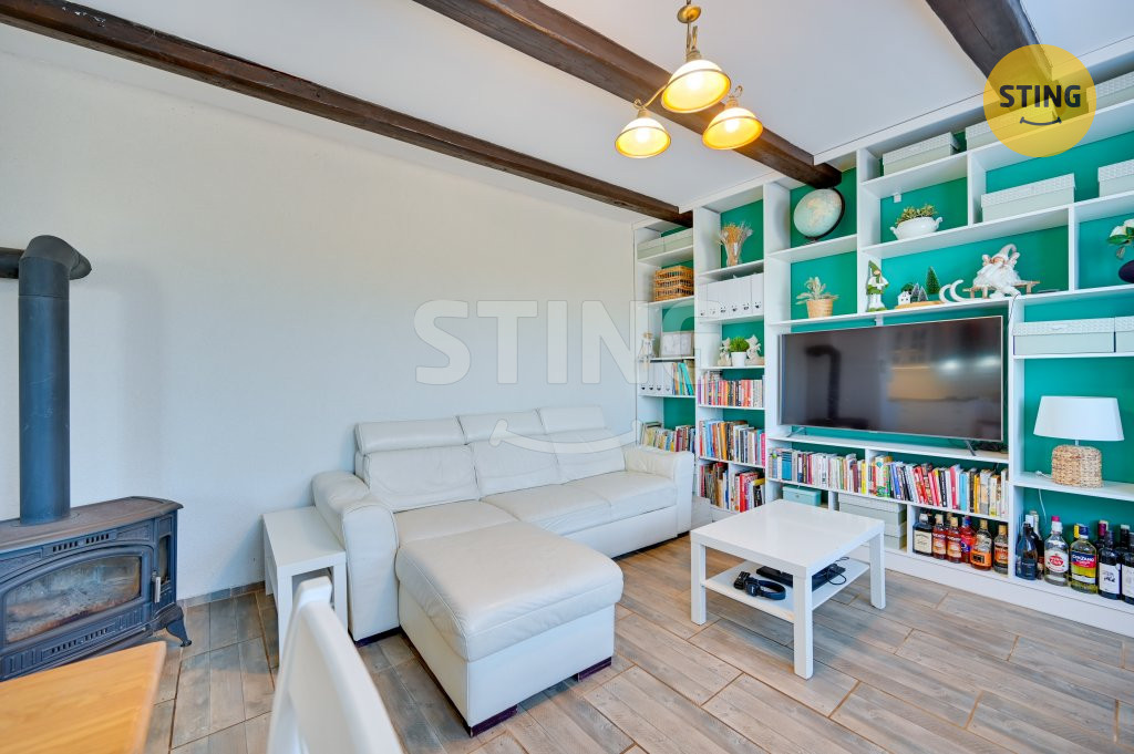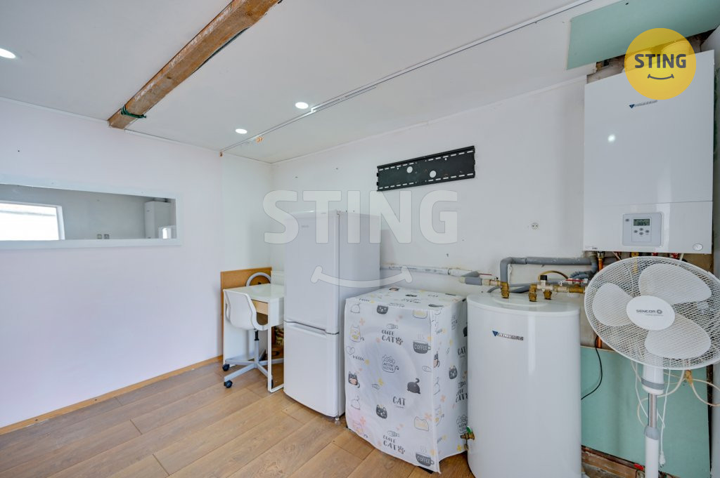 plynový kondenzační kotel. V obývacím pokoji lze využívat i krbová