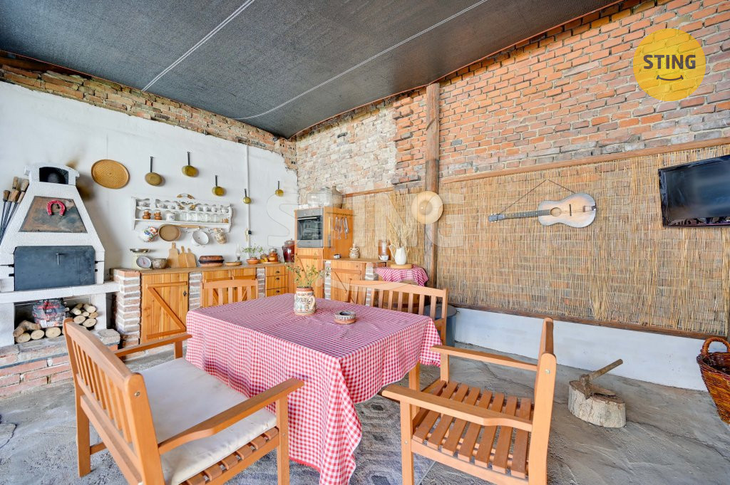 spíž a velmi prostorná odpočinková část s letní kuchyní, posezením a