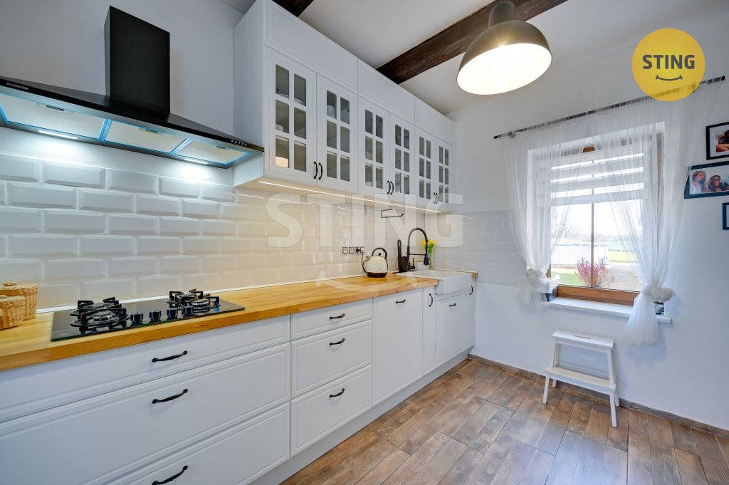 kamna. Střecha je sedlová pokryta pálenými taškami. Parkování je možné