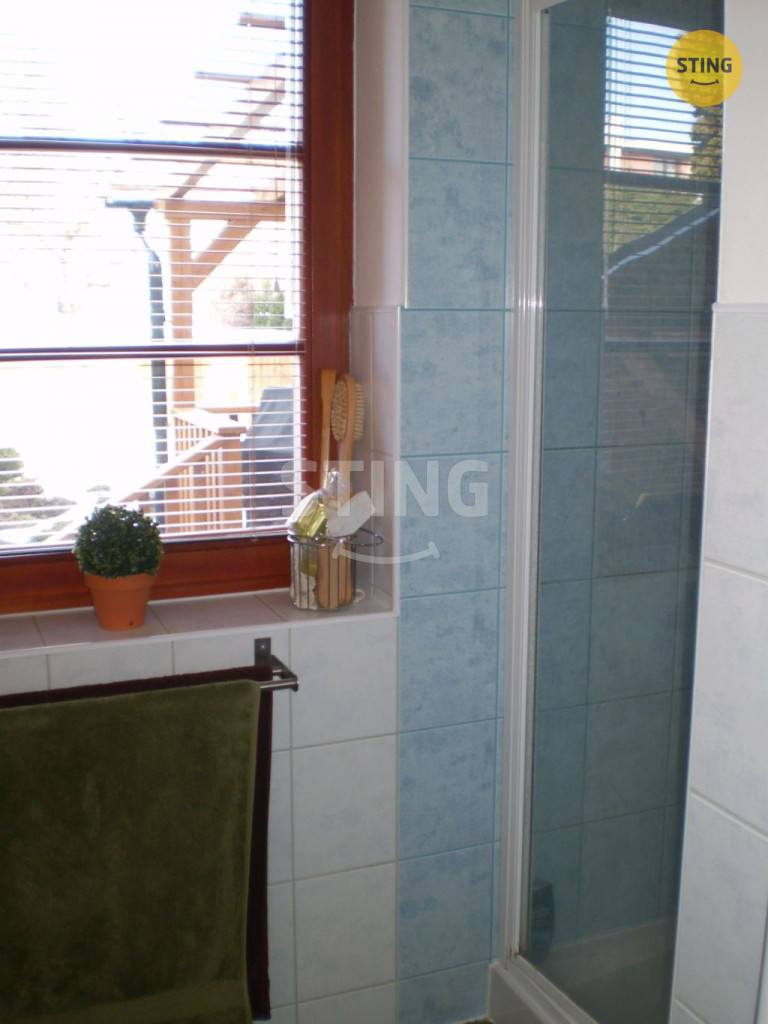 V tomto patře je dále koupelna se sprchovým koutem, samostatné WC, šatna a