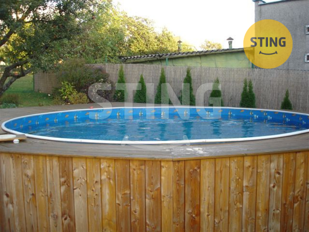 průměr) s dřevěný obkladem. Zahrada má rozlohu 700 m2.