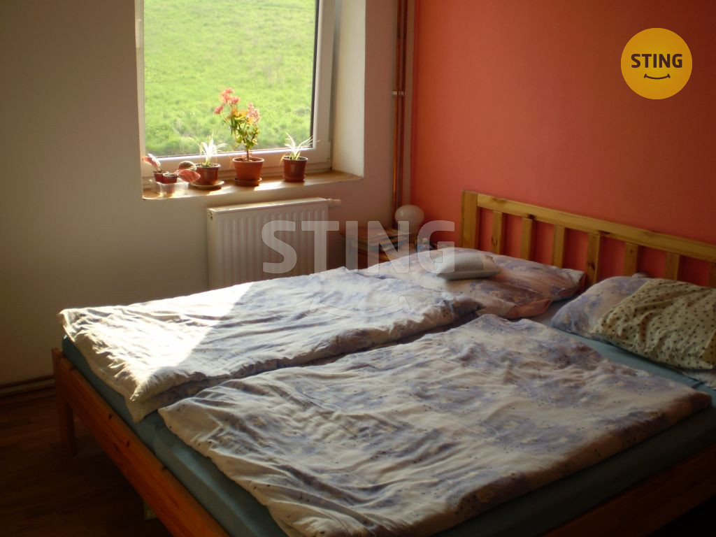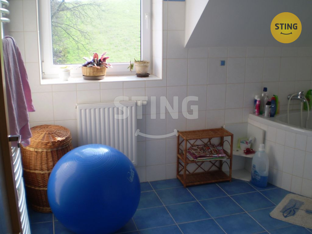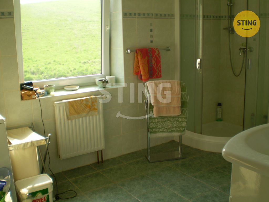 samostatná ložnice, koupelna a WC. Směrem na zahradu je obývací pokoj