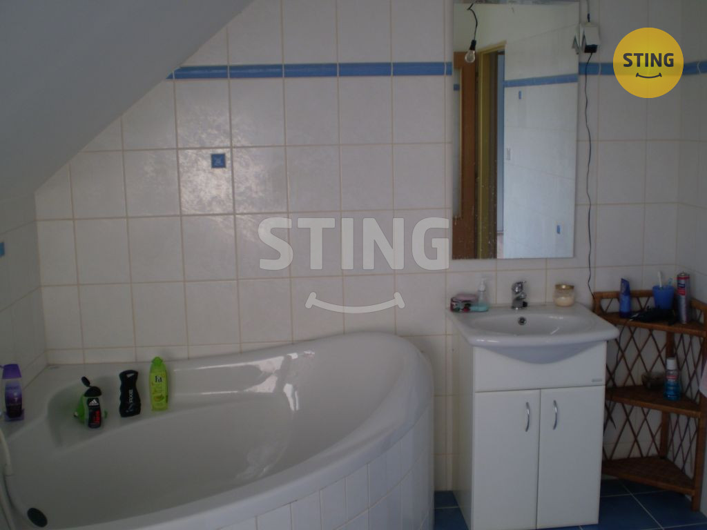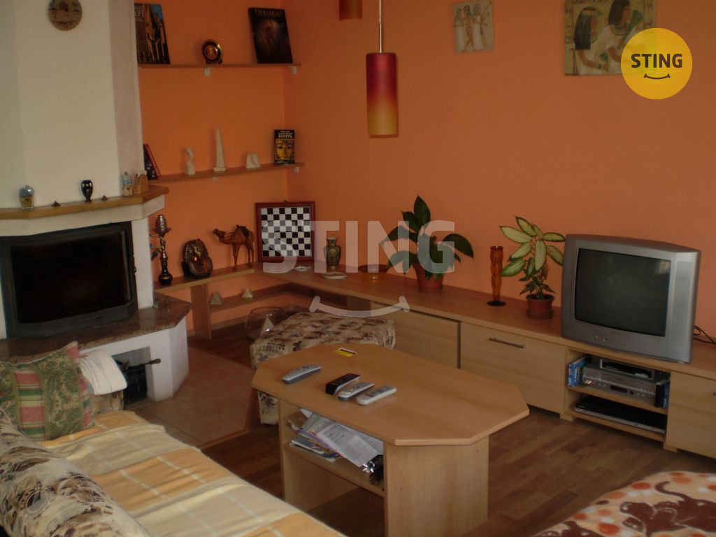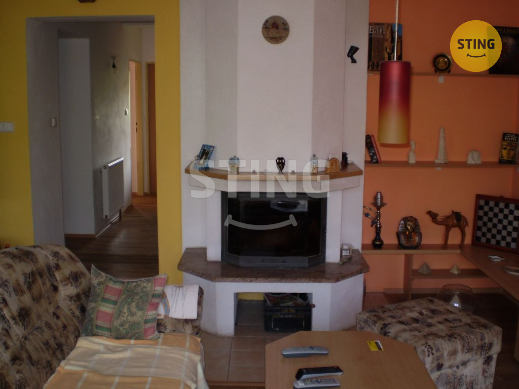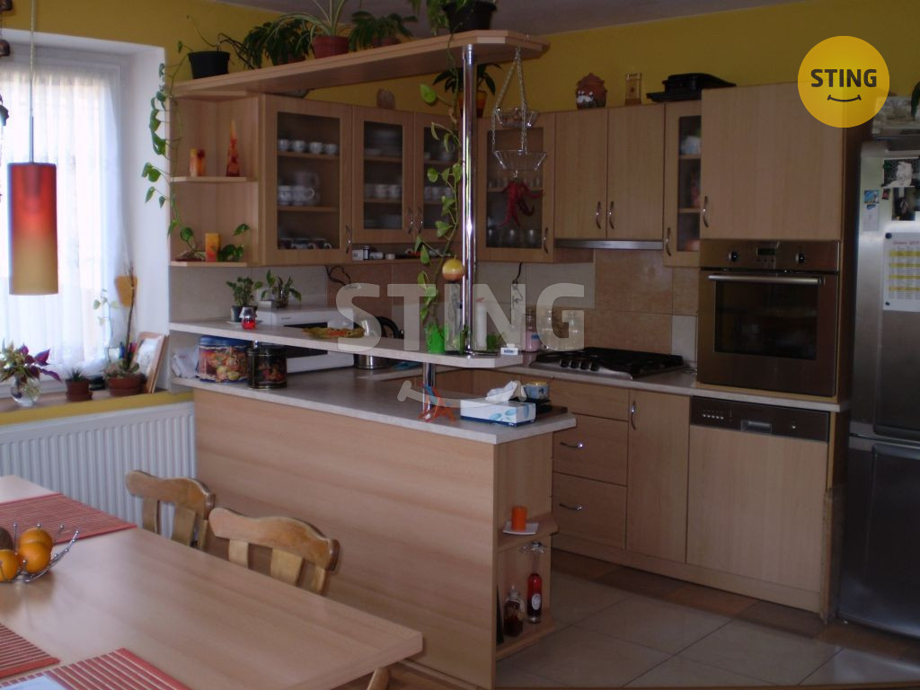 s kuchyní a prostorným jídelním koutem. Součástí obývacího pokoje je