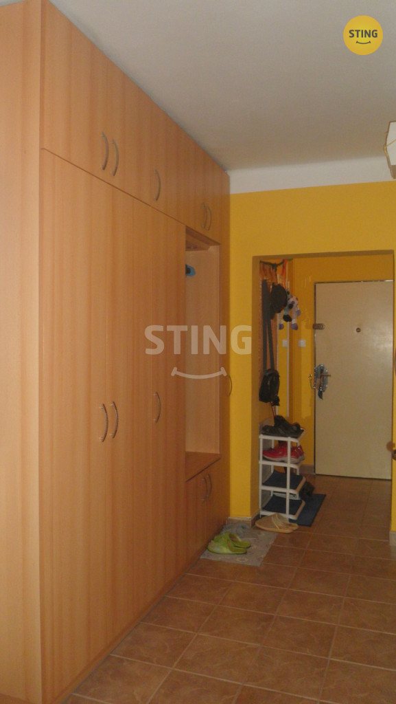 Prostorná předsíň s šatní skříní, která zůstane. V pokojích