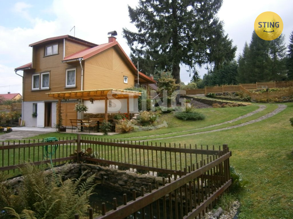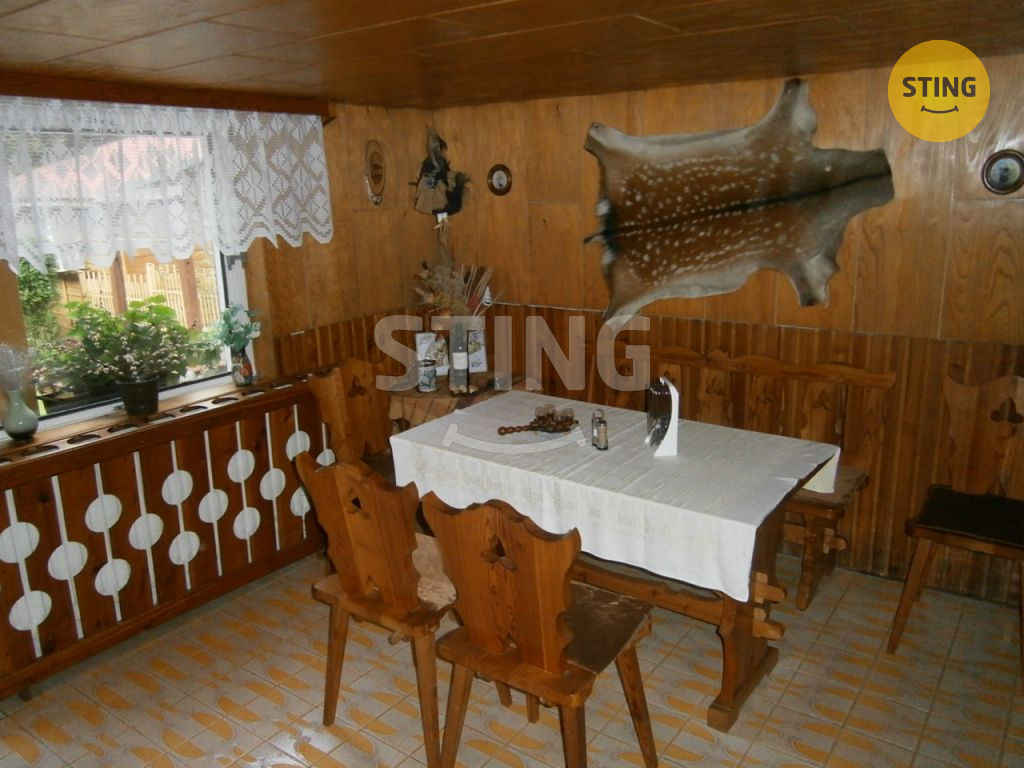 Nabízíme Vám rekreační chatu k celoročnímu užívání v obci Dolní Lomná dispozičně řešenou jako 6+1, v dobře dostupném, atraktivním místě, příjezd po asfaltové obecní cestě. V přízemé je kuchyň, místnost s krbem, koupelna s vanou, garáž, sklad dřeva a technická místost. 1.NP:zasklená veranda, záchod + umyvadlo, ložnice, obývací pokoj + 1× pokoj pro hosty, 2.NP: pokoj + dvě menší půdy. Chata se prodává s veškerým vybavením a je napojená na elektřinu, obecní vodovod, plynovod. Pěkná udržovaná zahrada o výměře 850m2 s okrasnými keři, stromy a příjemným venkovním posezením. Na pozemku je menší rybník a dřevěná chatka.