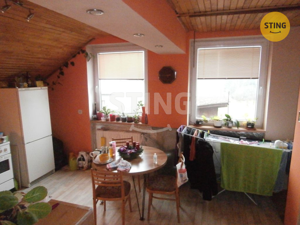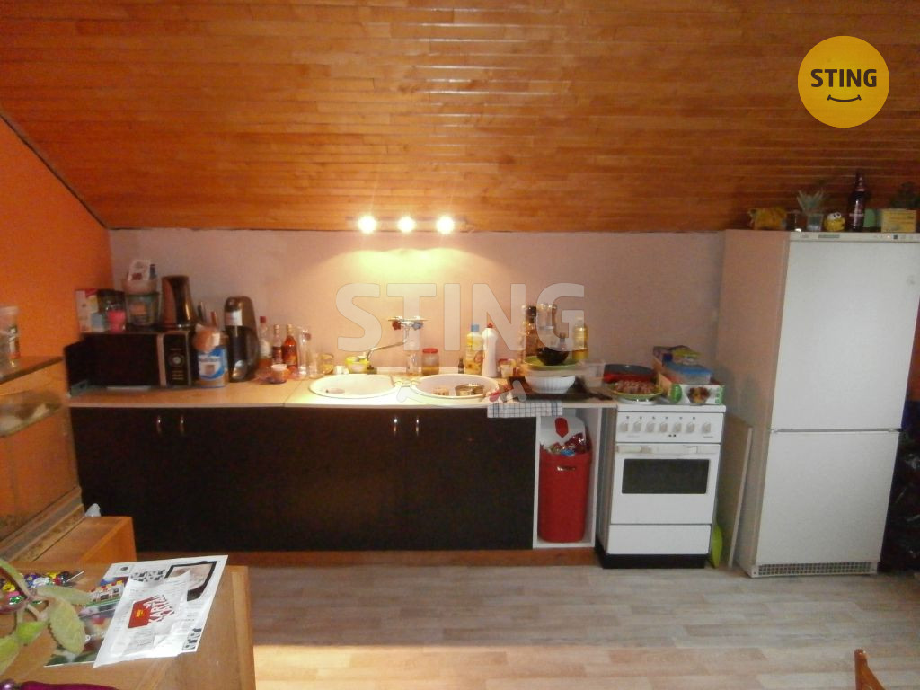 Podkroví – chodba, WC, obývací pokoj s kuchyňským koutem, dva