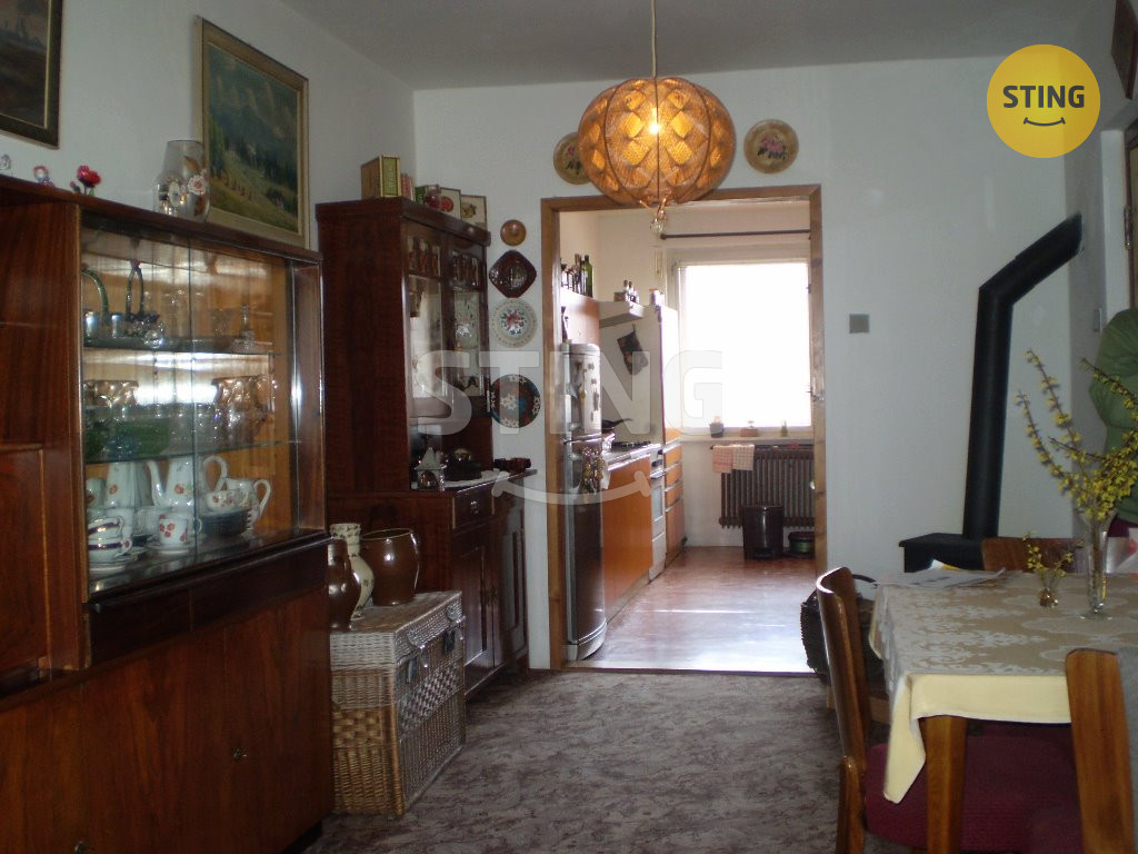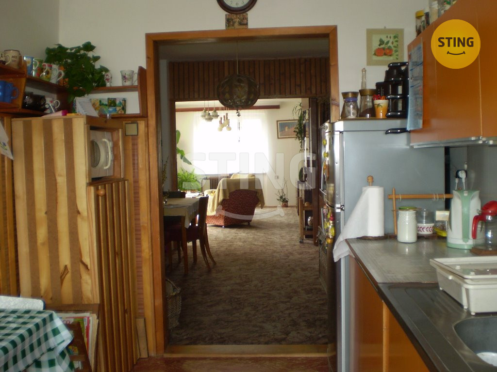 Nabízíme prodej rodinného domu 6+1+k v klidné části města Chotěboř. Jedná se o jednopodlažní, slunný řadový dům. Dům je celo-podsklepen. V suterénu je k dispozici garáž pro 2 auta, dílna, prádelna, kotelna, dva sklípky k uskladnění zeleniny a ovoce. Ze suterénu se vychází na zahradu za domem, kde stojí skleník a zděná kůlna(dříve chlívek). Obytné přízemí je účelně uspořádáno. Odpočinkové křídlo se 4 jednotlivými pokoji a sociálním zázemím je chodbou odděleno od kuchyně a společenské části. Zde se nachází kuchyň s jídelnou s krbovými kamny a velký slunný pokoj. Obě části jsou propojeny prostorným zádveřím. Vytápění v domě je zajištěno ústředním topením na plynový kotel. Dům stojí v příjemné, klidné lokalitě města se zástavbou rodinných domků. Chotěboř, která má veškerou občanskou vybavenost, včetně několika středních škol, sportovního i společenského vyžití je obklopena krásnou přírodou. V těsné blízkosti naleznete CHKO Železné Hory, údolí Doubravky a jiné zajímavosti. Doporučuji prohlídku.
