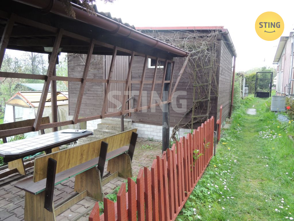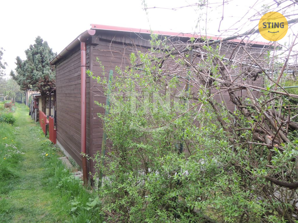 Nabízíme k prodeji podsklepenou zahrádkářskou chatku o zastavěné ploše 3,8×4,3 m. Suterénní zdivo je vyzděno z plynosilikátových tvárnic, opatřených z vnější strany svislou izolací proti tlakové vodě. Chatka stojí ve svažitém terénu. Horní část chatky je z trámových dřevěných prvků, opláštěných dřevěnými palubkami z vnější strany a sádrokartonovou konstrukcí z vnitřní strany. V přízemí se nachází kuchyň, v 1 NP pokoj s koupelnou se sprchovým koutem, WC. V chatce je pitná voda s průtokovým ohřívačem, elektoinstalace 220, 380 V, odpad řešený jímkou s přepadem. Součástí prodeje je zahrada o celkové výměře 253 m2 s ovocnými stromy (jabloně), pergola s grilem a uzákem. Přístupová cesta zajištěna. Parkování vyřešeno cca 3 minuty chůze.