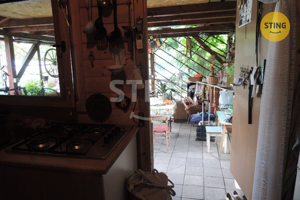 prostorná pergola s letním posezením. Součástí prodeje je veškeré