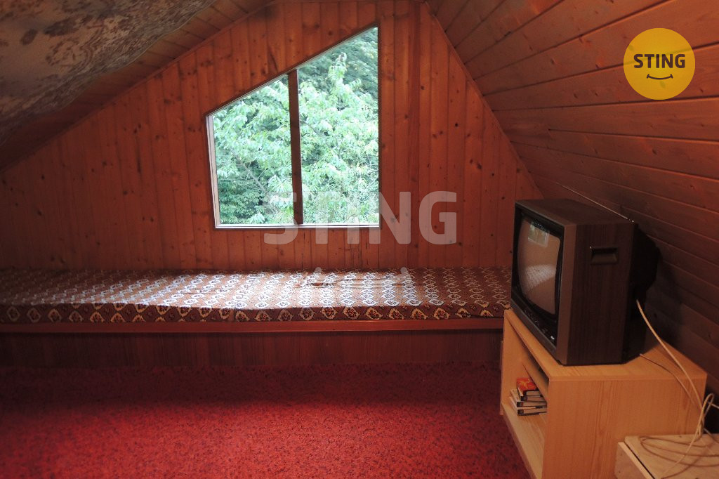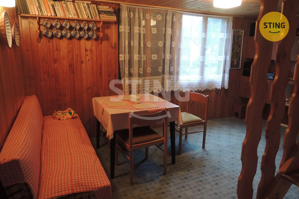 Lukrativní nabídka. Nabízíme k prodeji rekreační chatu v klidné části Horního Těrlicka s veškerou vybaveností. Chata má dispozici 4+1, dálkový vodovod s průtokovým ohřívačem, elektřina 220 i 380 V, odpad řešený septikem s přepadem. Chata má zděný základ + dřevěnou nástavbu. V podzemním podlaží se nachází společenská místnost s krbem a komorou na uskladnění potravin, v 1 NP se nachází obývací pokoj s kuchyňským koutem, koupelna se sprchovým koutem, samostatné WC. Do 2 NP se jde po dřevěných schodech, které mají příklop pro odhlučnění klidové zóny ve 2 NP – zde se nachází 2 pokoje na spaní. Součástí prodeje je veškeré vybavení chaty. Před chatou je možnost venkovního posezení v pergole. Příjezdová cesta soukromá s podílovým vlastnictvím, asfalt. Nemovitost má přiděleno číslo evidenční. V dosahu pěší chůze zástavka autobusu, COOP obchod, 5 km Žermanická přehrada. Doporučuji prohlídku.