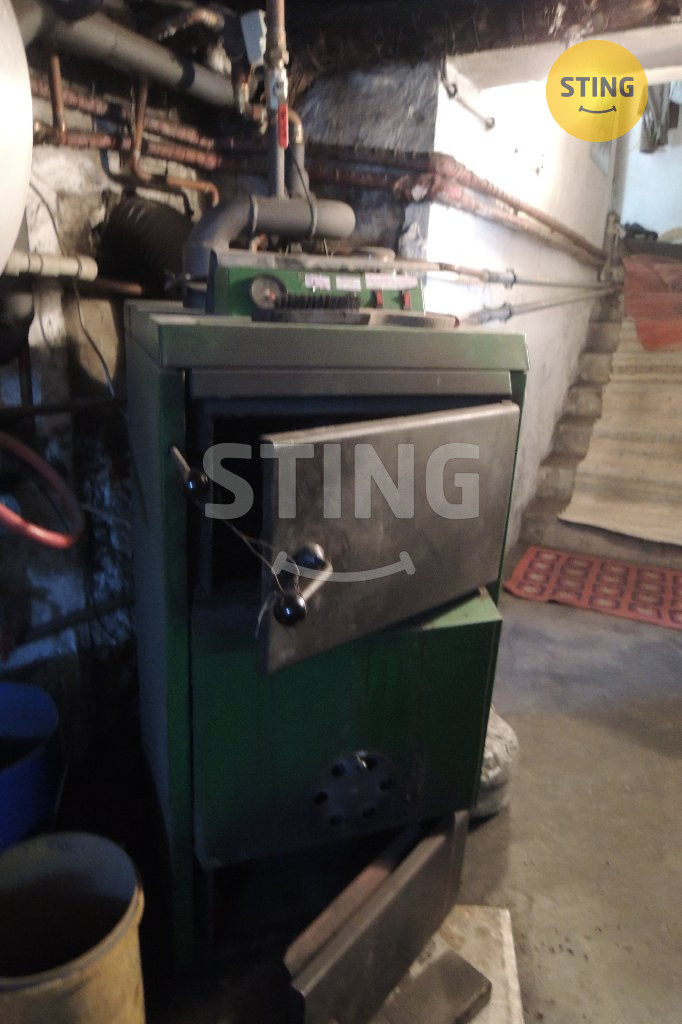 kotel i nový kotel na tuhá paliva. Dům je ze 3/4 podsklepen, ve sklepě je