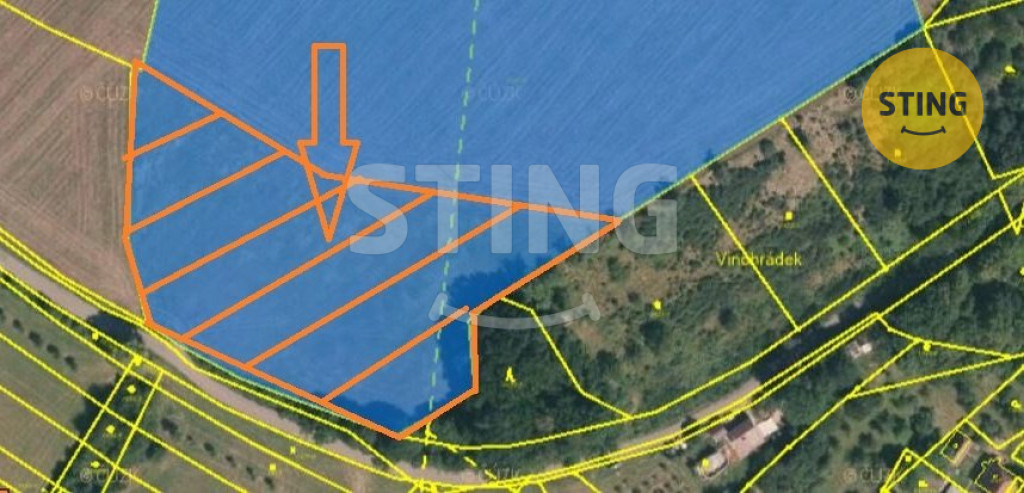 38 175. Pozemek je situován v mírném svahu orientovaném na jih a