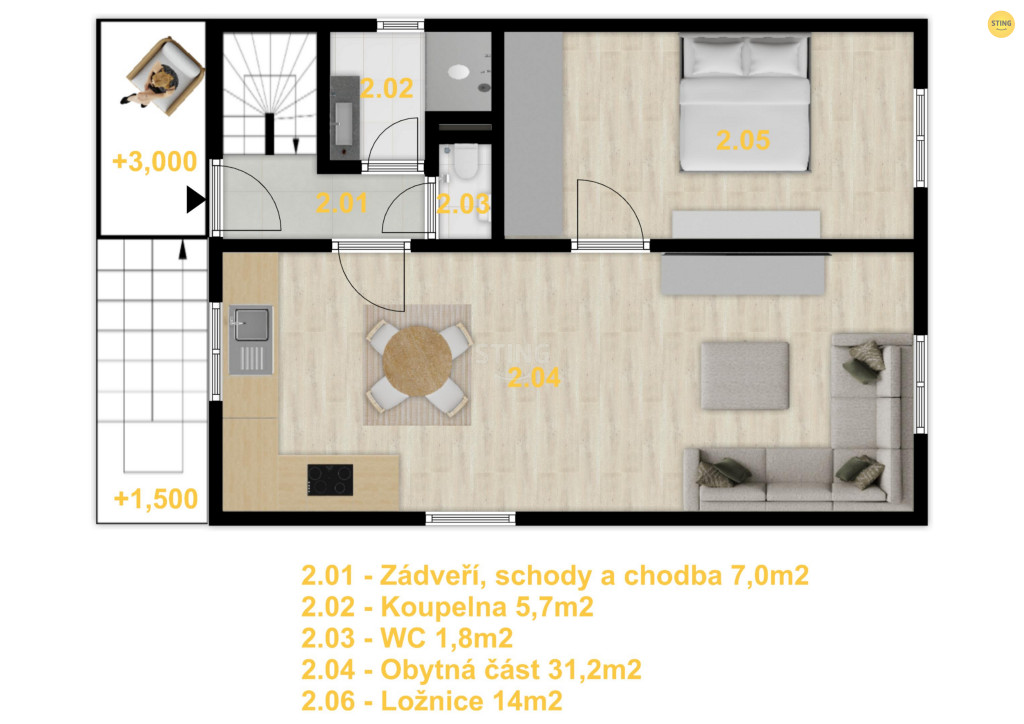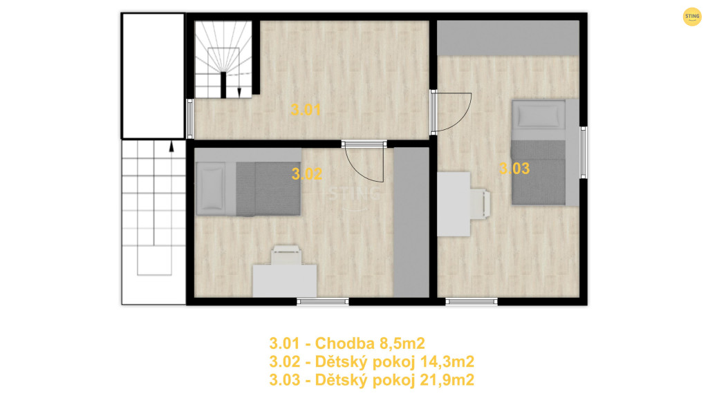 vstupní chodby vede schodiště do podkrovím kde se nachází 2 samostatné