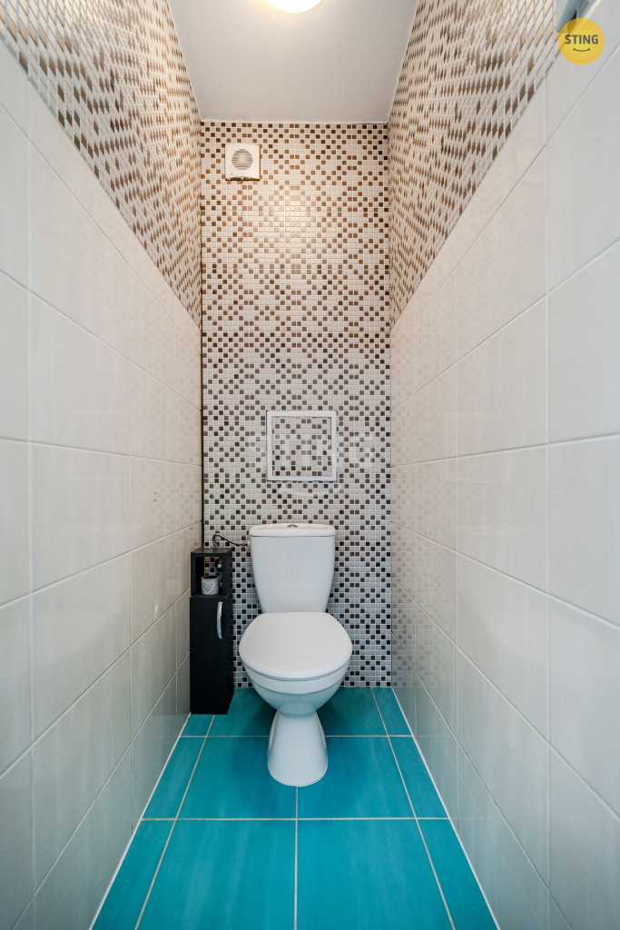 barevném dekoru jako oddělené WC. V celém bytě jsou rozvody elektřiny