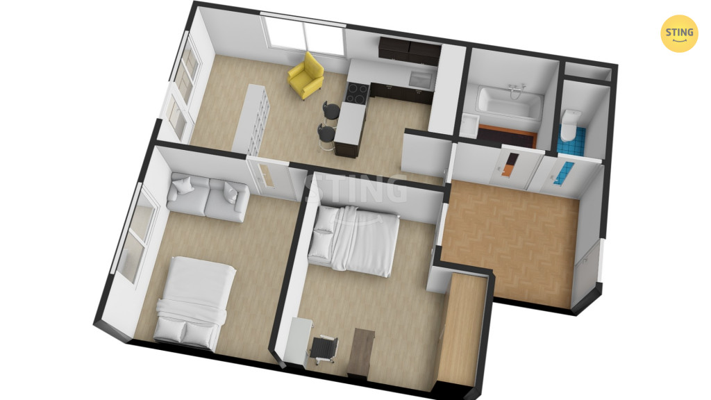 bytu je podlahové vytápění, vinylová plovoucí podlaha.