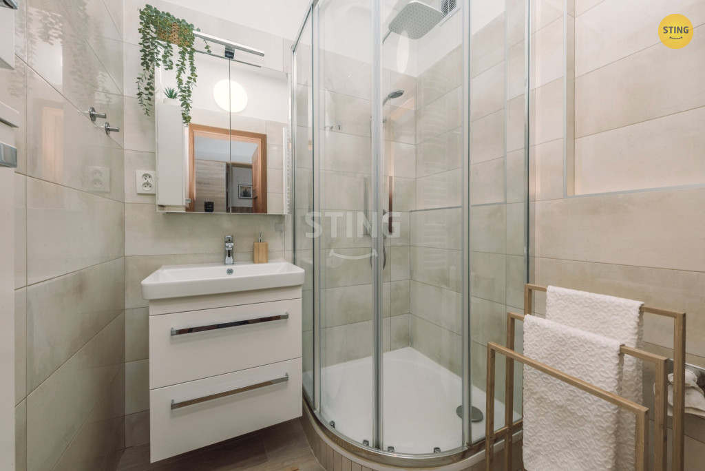 místnostmi, kuchyní, koupelnou se sprchovým koutem a samostatnou toaletou.