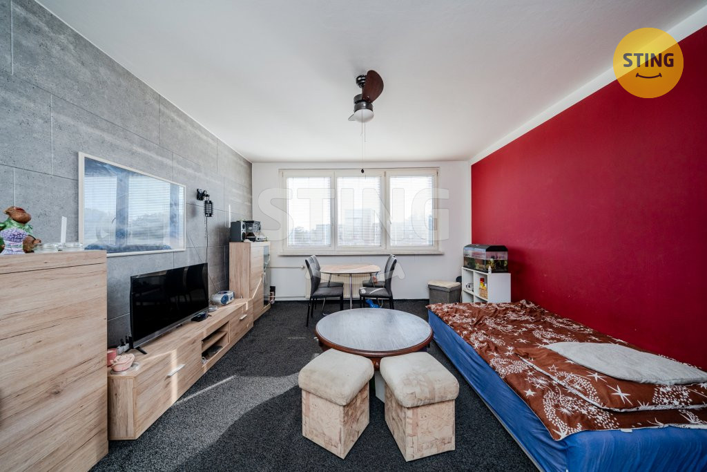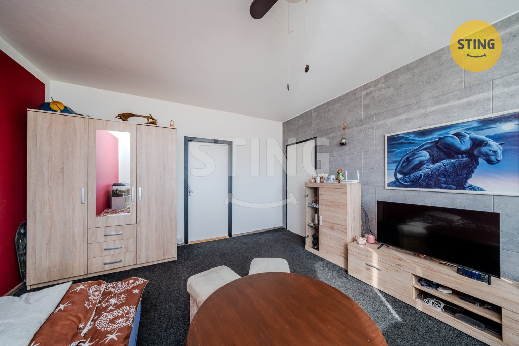 Prostorný obývací pokoj je průchozí do ložnice se vstupem na lodžii, což