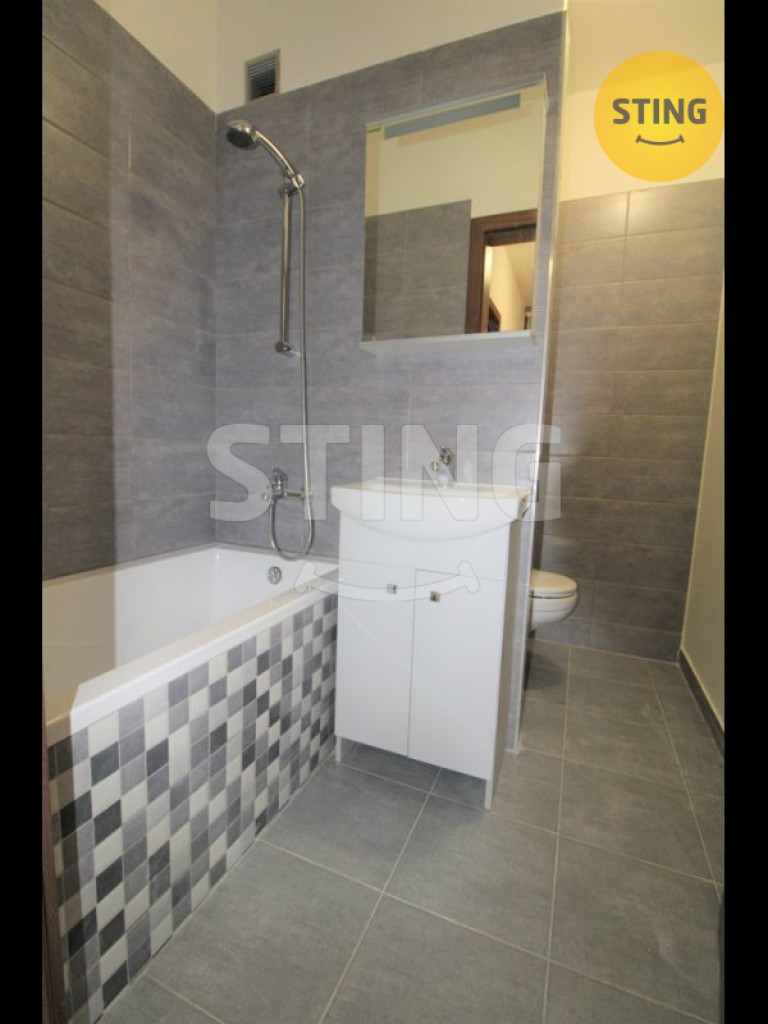 sušičkou, myčka, digestoř. Koupelna s vanou, společná s WC. V chodbě