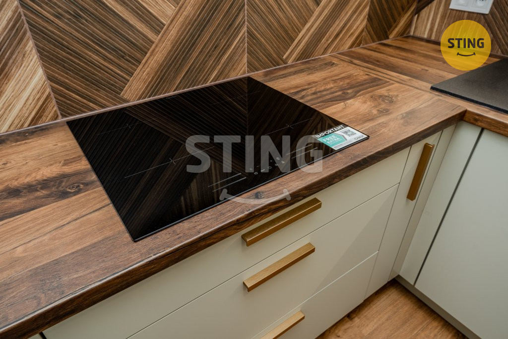 Kuchyňská linka je vyrobena na míru a vybavena kvalitními vestavnými