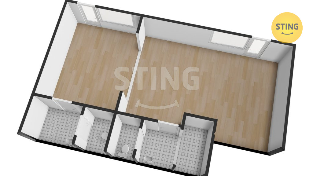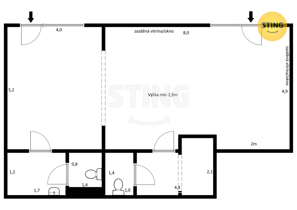 Lze rozdělit na 2 samostatné části (2× vstup, 2× WC).