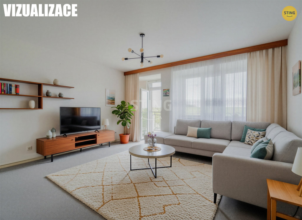 Hrabyně. Byt s okny na západní stranu má dva samostatné pokoje, kuchyni,