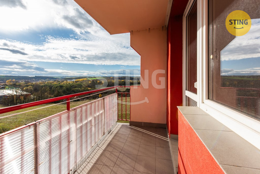 zatepleného panelového domu a z jeho oken se otevírají krásné výhledy na