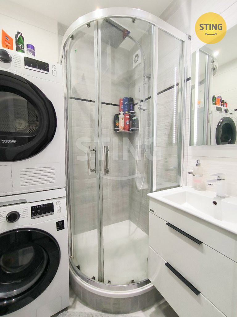 prostornou zasklenou lodžií, k bytu náleží sklep. V domě je kamerový
